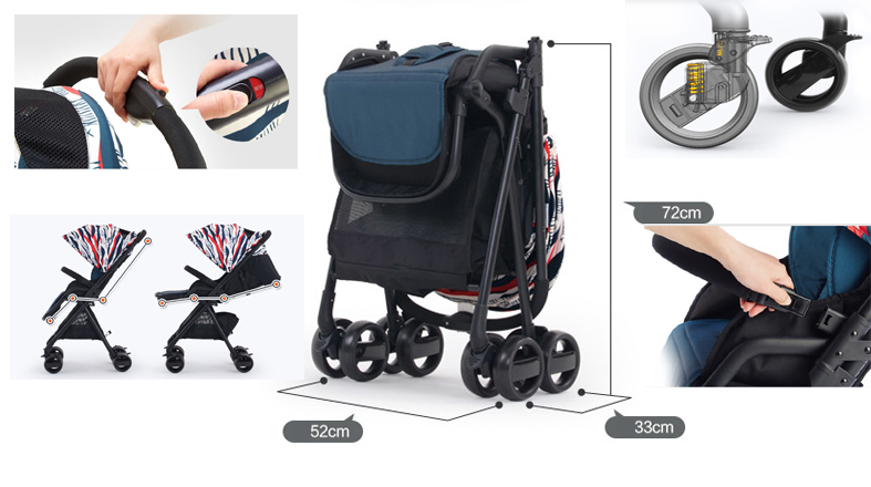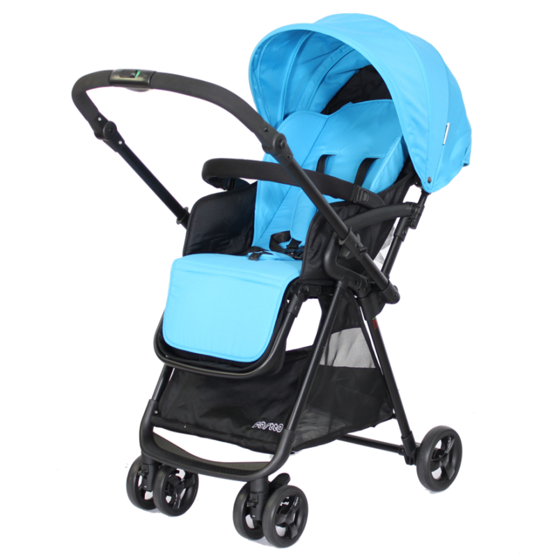 Silla de paseo reversible con manillar ajustable en varias alturas.
