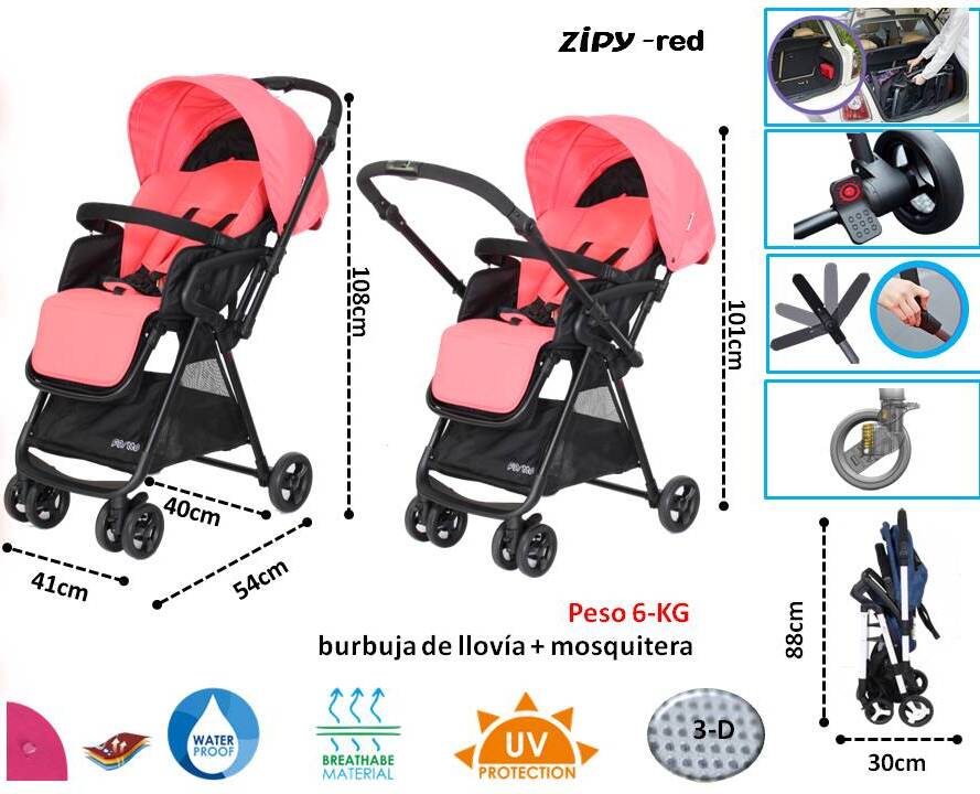 Incluye plástico de lluvia y mosquitera.